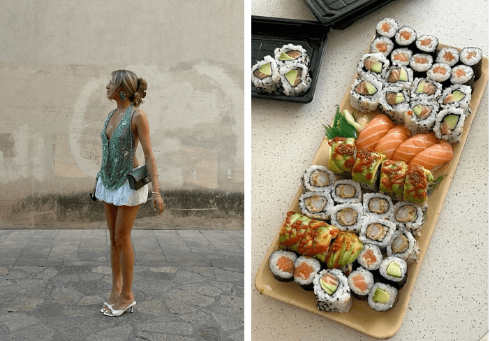With sequins being one of the most popular fashion trends right now, it's the perfect opportunity for you and your friends to dress up in your favorite sequined pieces and come over for some sushi. There are so many different outfit ideas, from skirt-and-top sets to sequin mini shorts, and establishing a color palette makes it even more extra and fun. Whether you get the sushi catered or do a little DIY at home, it's bound to be a fun time with your girls. Pairing the sushi with a lychee martini or your favorite wine is also a great way to turn this into a pre-going-out gathering. The pictures are destined to shine.